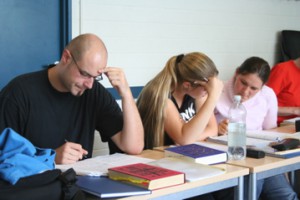 Claudia Sentürk, die bereits in einer Sprachschule gejobbt hatte und über entsprechende Kontakte verfügte, hatte dann die Idee, eine Einrichtung aufzubauen, die Studenten mit ähnlichen Problemen helfen soll, sich in den Semesterferien für das Latinum fit zu machen, ohne daß dabei ihr reguläres Studium beeinträchtigt wird. Als dann auch die Uni ihre Unterstützung zugesichert und entsprechende Räumlichkeiten am Campus Bockenheim bereitgestellt hatte, war der äußere Rahmen klar und mußte jetzt nur noch mit Ideen gefüllt werden. Deshalb griff Sie den Akademiegedanken auf, ohne dabei in die Gefahr einer Anmaßung zu geraten.